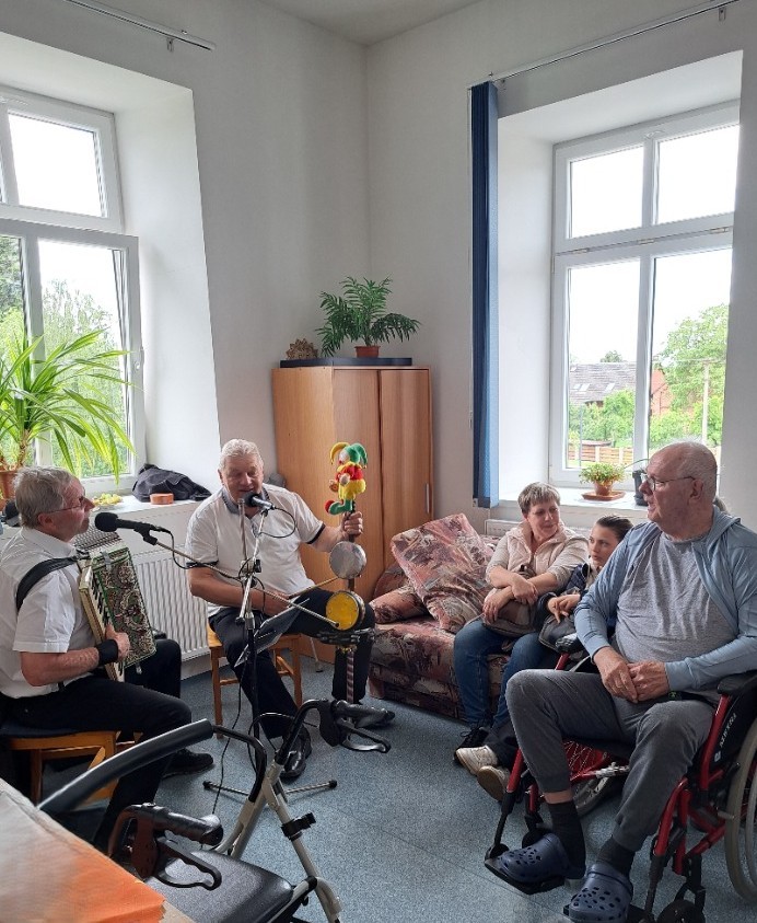 Posezení s muzikou a občerstvením pro klienty a jejich příbuzné a blízké.